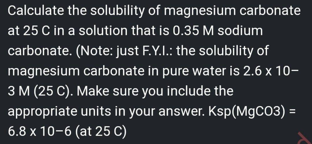 Solved Calculate the solubility of magnesium carbonate at 25